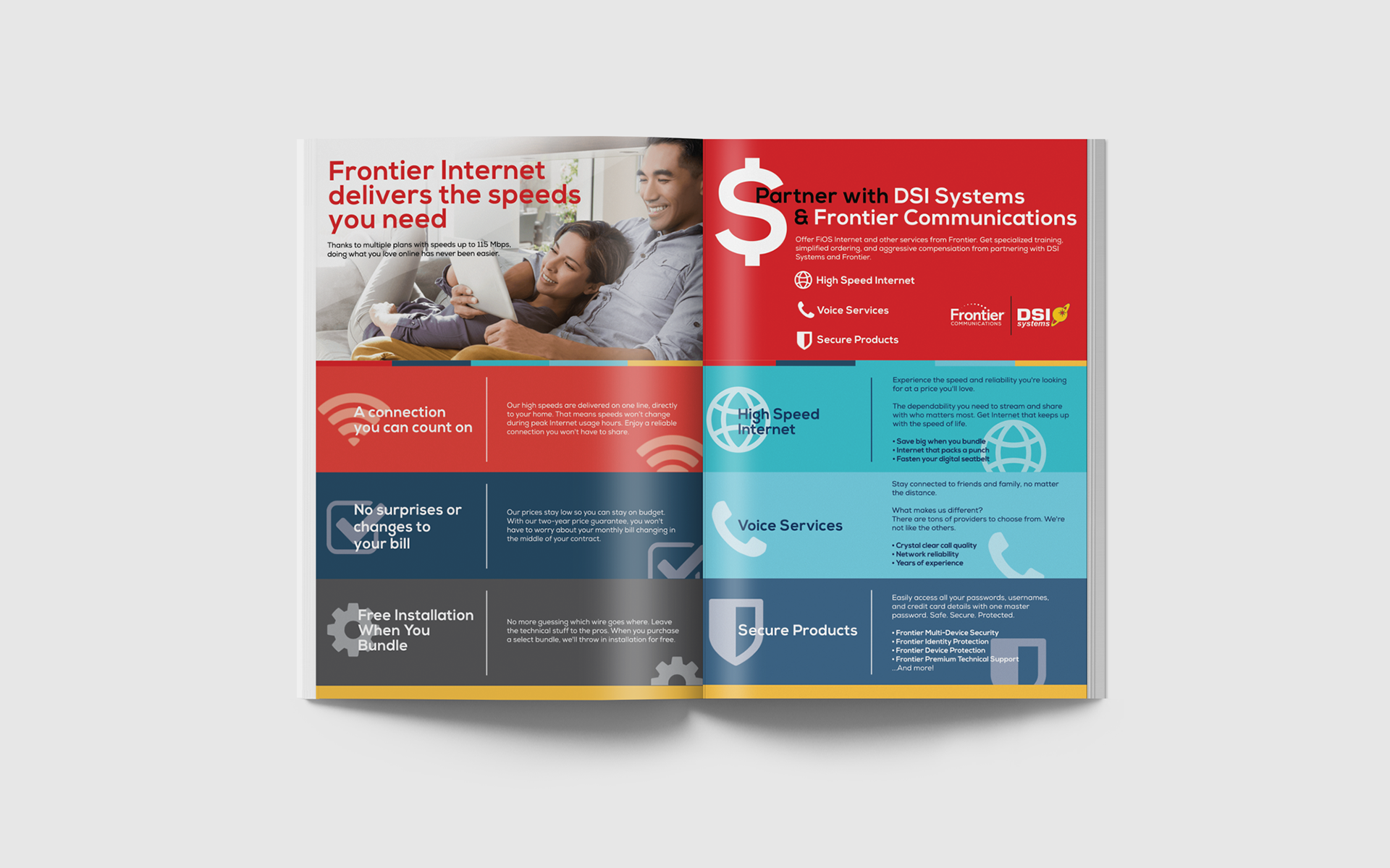 This was a proposed design for DSI's product and services catalog. Unfortunately this was scrapped once the decision to rebrand the company was made
